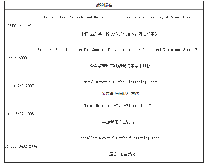 壓扁試驗是檢驗金屬管壓扁到規定尺寸的變形性能。是用來檢測鋼管工藝性能的重要試驗,通常對外徑不過400mm、管壁厚不過外徑15%的圓形橫截面無縫和焊接鋼管的檢測都食用,主要測定鋼管壓扁塑性變形的能力,同時可以檢測出管材的缺陷等問題。