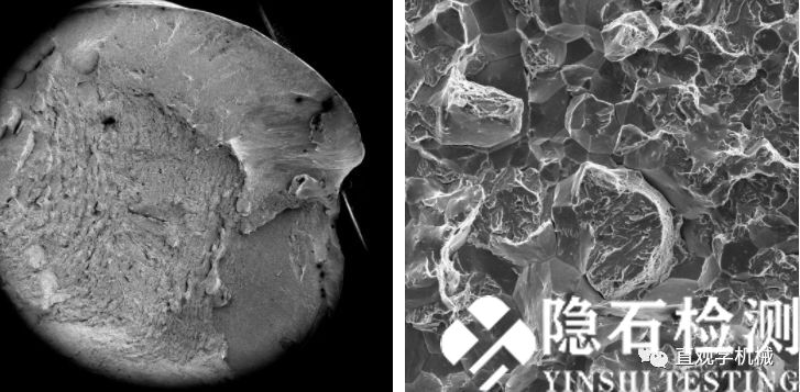 金屬斷口通常是一個(gè)凹凸不平的粗糙面,而且是塊狀樣品,取樣容易,在掃描電鏡的樣品倉(cāng)中可進(jìn)行傾斜旋轉(zhuǎn)多角度觀察,因此掃描電鏡非常適合斷口分析。